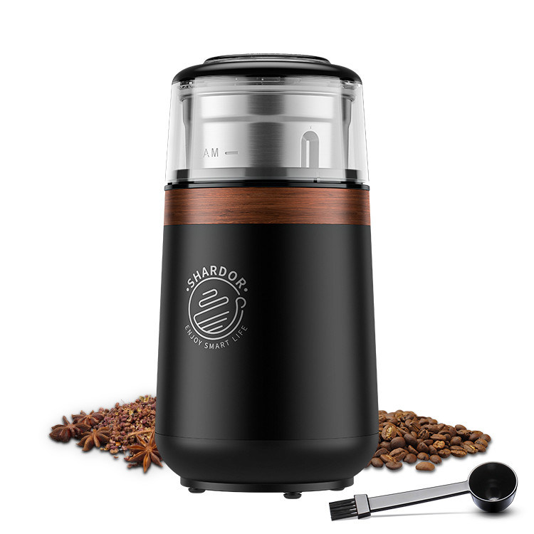 1)Accionado por el motor 120V y 200-Watt, muele rápidamente mientras que preserva sabores aromáticos de los granos de café, de las hierbas, de las especias, de los granos, del etc